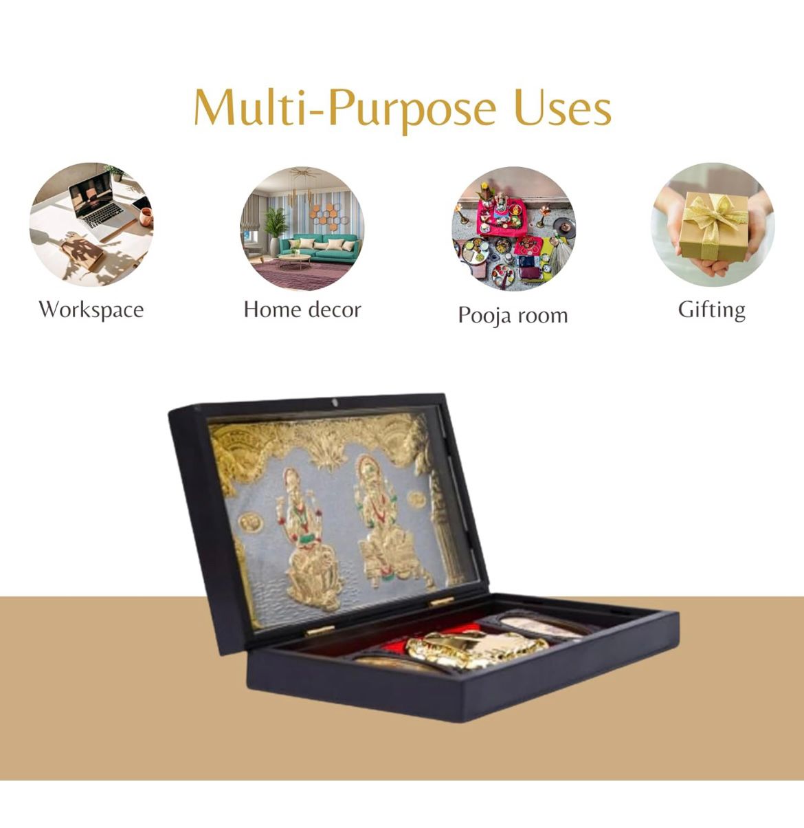 24 Karat Gold Plated Decorative Laxmji Ganeshji Photo Frame & Charan Paduka for Gifting, Home Decor and Pooja Room Decoration