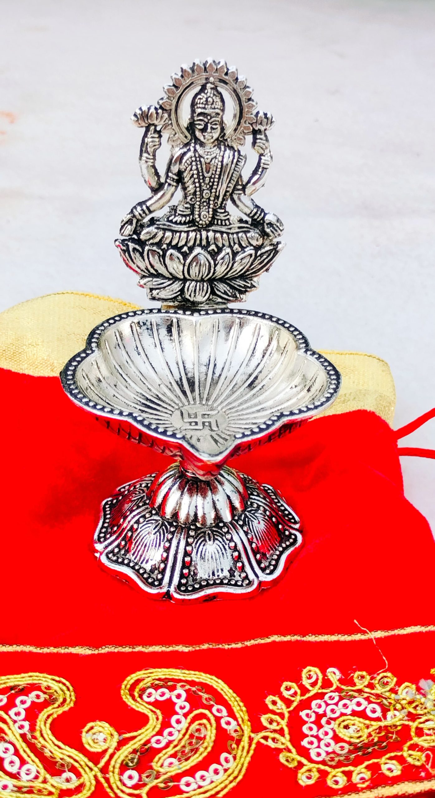 1. Pure silver antique finish Laxmi / Ganesh diya