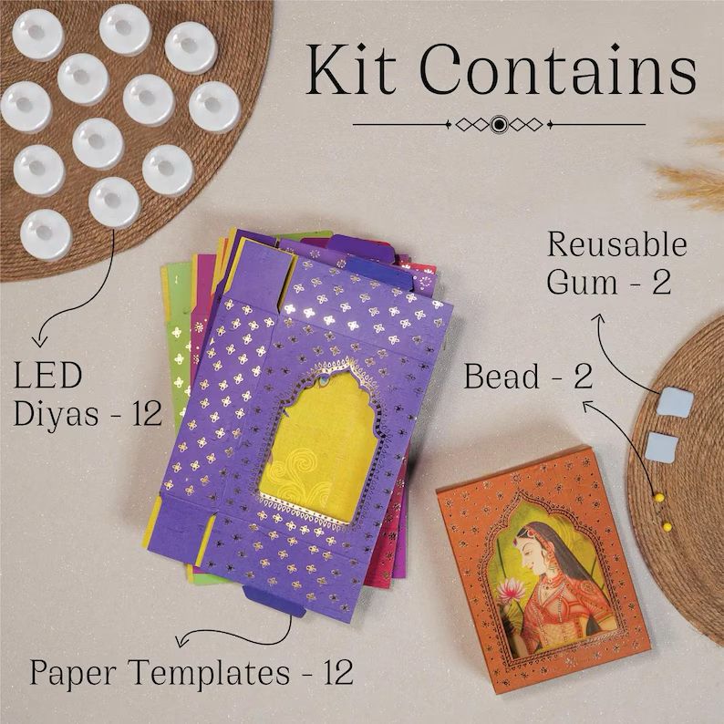 ✨ Includes 12 premium card jharokha boxes with 12 realistic battery operated tealights